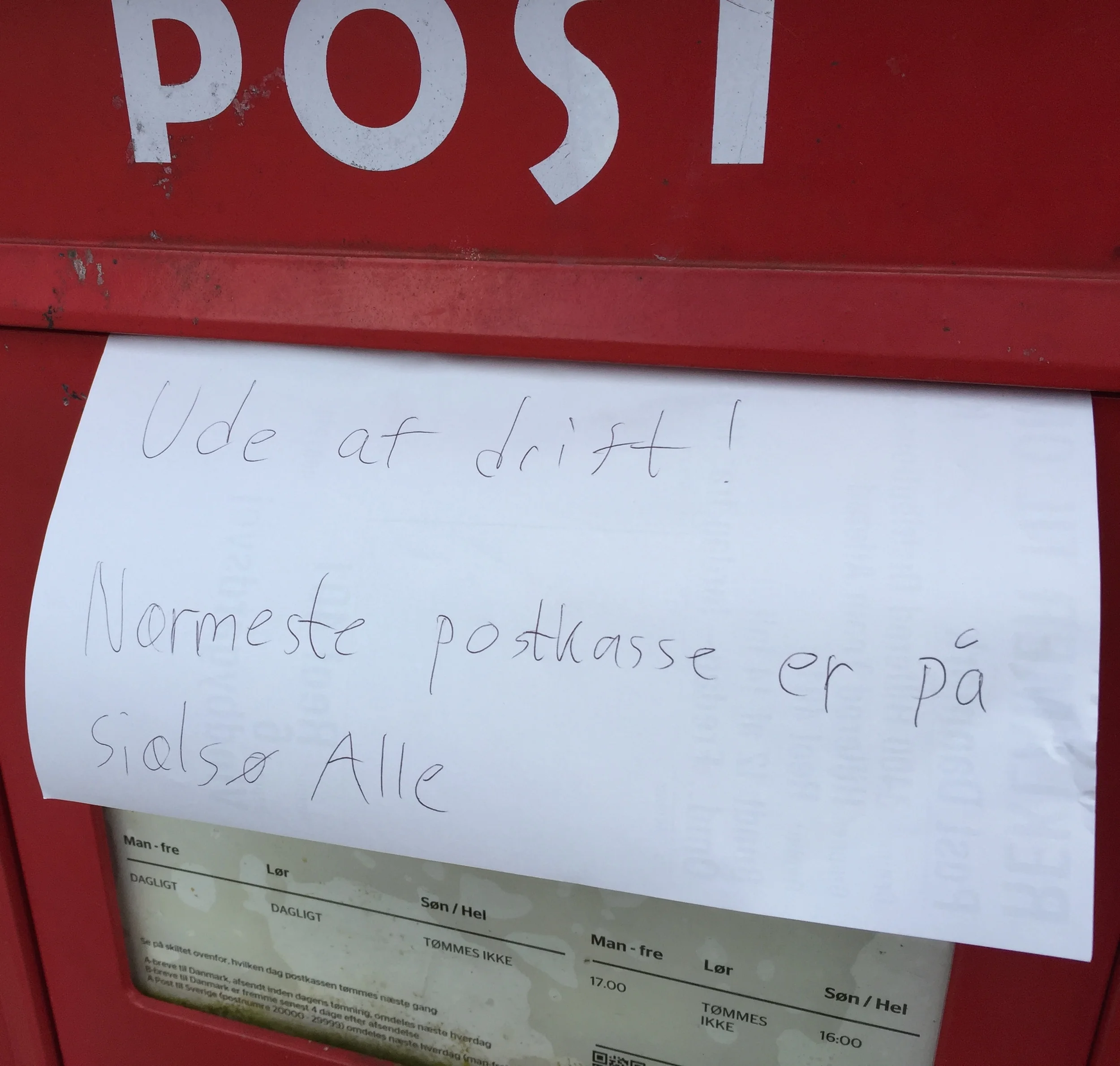 Postvæsnet har her i Blovstrød henvist til postkasserne ved Sjælsø Allé. Foto AOB
