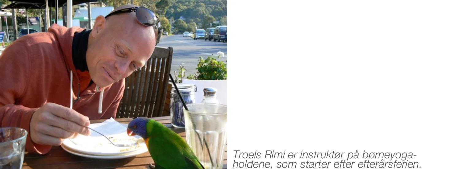 Vi har indgået aftale med Troels Rimi, om at være instruktør på holdene, og han har en meget markant yoga-baggrund. Troels Rimi har over 20 års erfaring inden for yoga, og han har bl.a. tilbragt 12 år i en ashram i Indien med henblik på at få yoga helt ind under huden.
