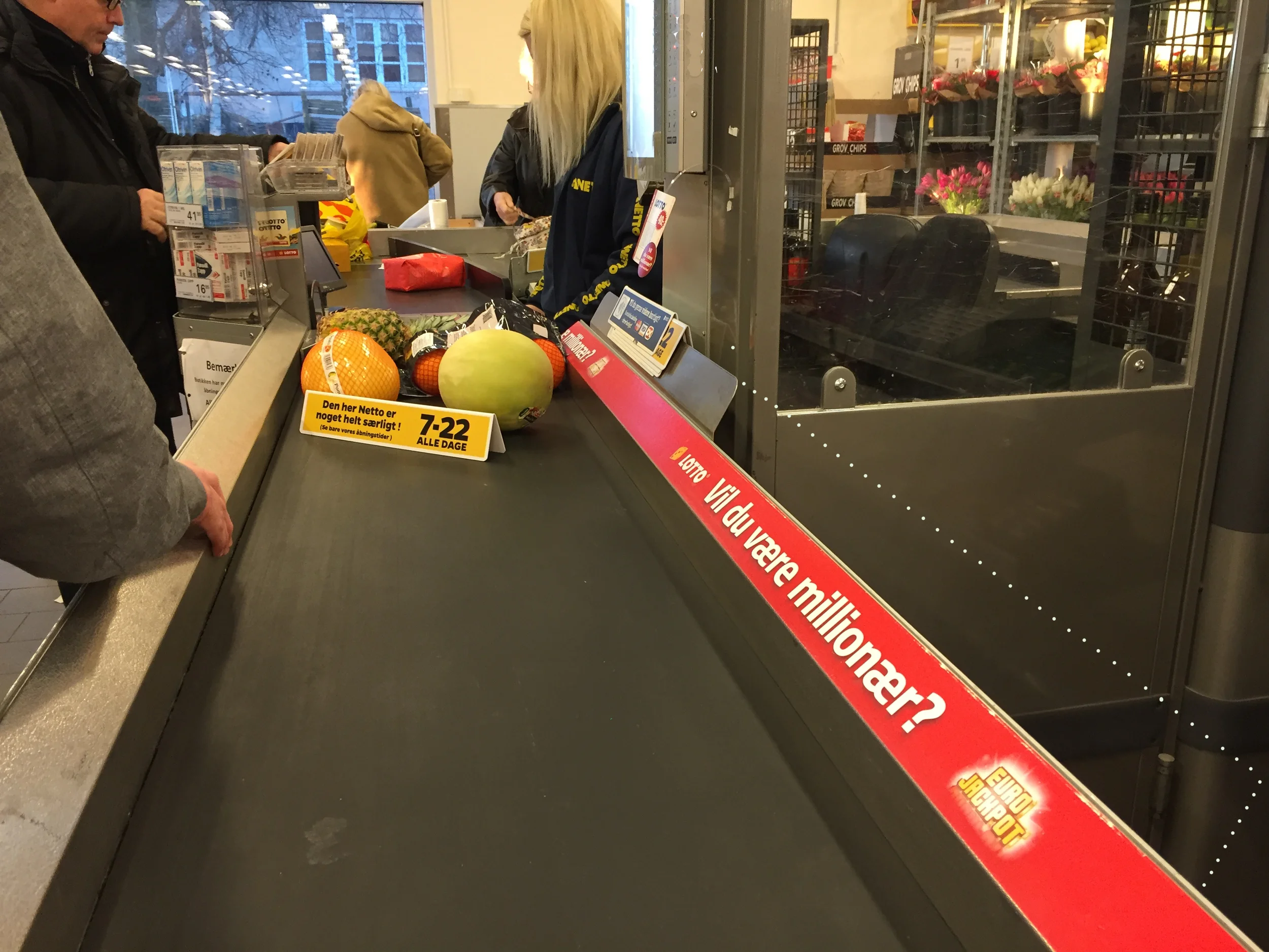 "Jeg kan godt lide at handle i Netto på Kongevejen her i Blovstrød. Man kan få de fleste af de dagligvarer man ønsker, men nå jeg kommer hen til kassen og lægger min varer op på båndet, kan jeg ikke nå 'varedeleren', fordi, den skinne de ligger på, er alt for kort. Den næste kunde kan således ikke lægge sine varer op på båndet uden at blande dem med mine varer.