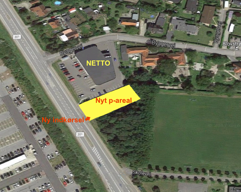 Netto i Blovstrød har indgået en betinget købsaftale med naboen mod syd og vil udvide parkeringsarealet