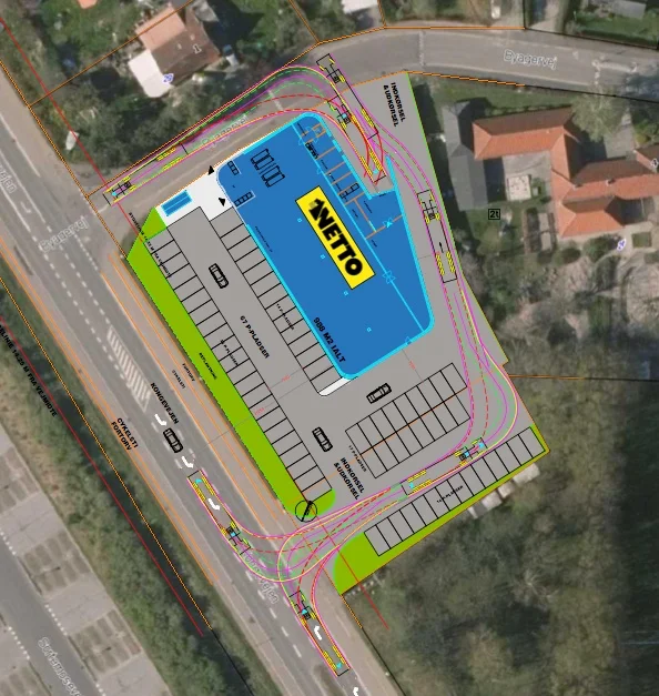 TRAFIK Netto har indgået en betinget købsaftale med naboen mod syd, entreprenør Willy Christensen. Det er Nettos plan, at villaen skal rives ned, og grunden skal udnyttes til at udvide butikkens parkeringsareal. Samtidig vil man etablere en ny indkørsel direkte fra Kongevejen længst mod syd.