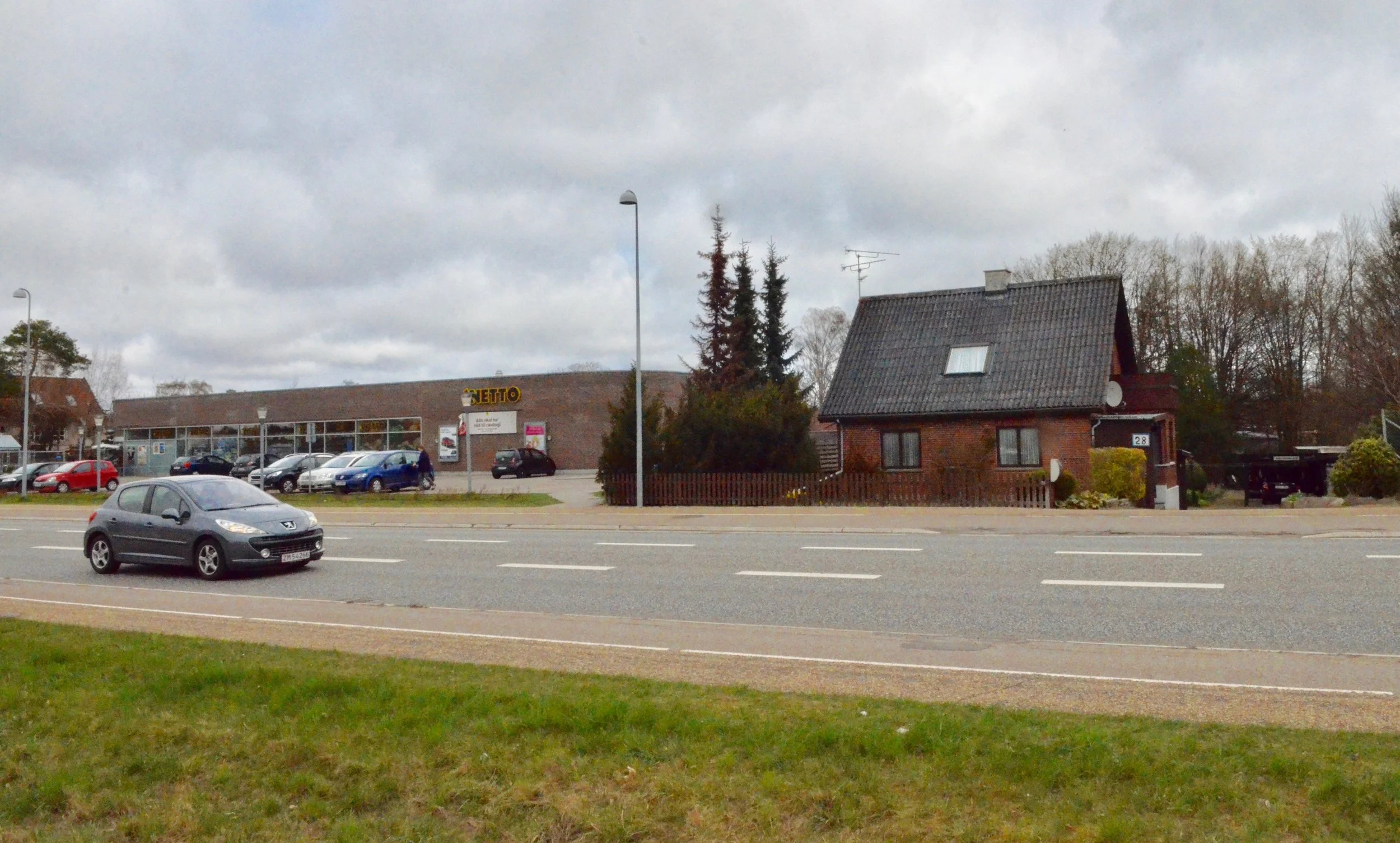 Det er Kongevejen 28, som Netto vil købe. De vil nedrive bygningen og derefter fylde grunden op og udvide parkeringsarealet. Samtidig etableres en ny indkørsel direkte fra Kongevejen. Foto: AOB