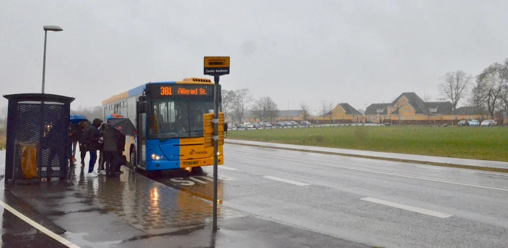 En Blovstrød-borger fortæller til AOB, at hun har oplevet en situation midt på formiddagen, hvor bussen (rute 381) kommer fra Hørsholm og stopper ved Center Sandholm. Her er der bl.a. 8 - 10 unge mænd, som skal med til Allerød Station.