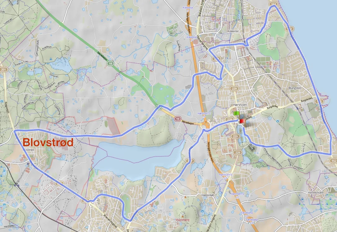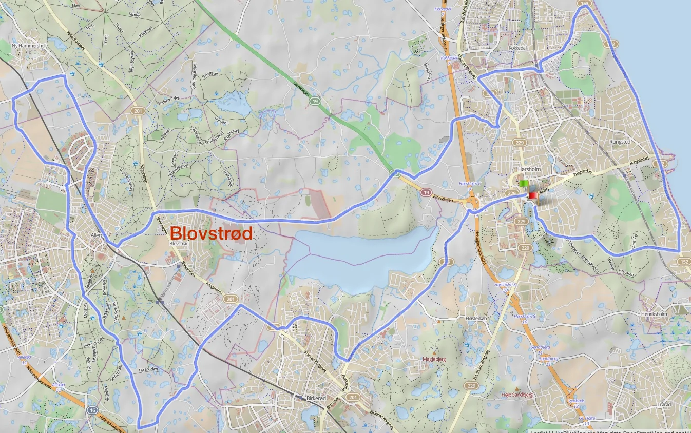 Denne rute er på 50 km og passerer Blovstrød på Sandholmgårdsvej.