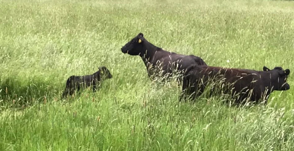 I år er der kun to voksne køer og en kvie, som græsser på engen - men senere kommer der flere