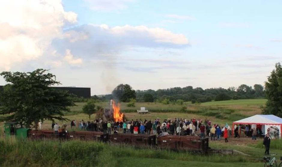 Blovstrødbanen holder traditionsmæssigt sankthansaften på arealet ved jernbaneoverkørslen ved Blovstrød Teglværksvej.