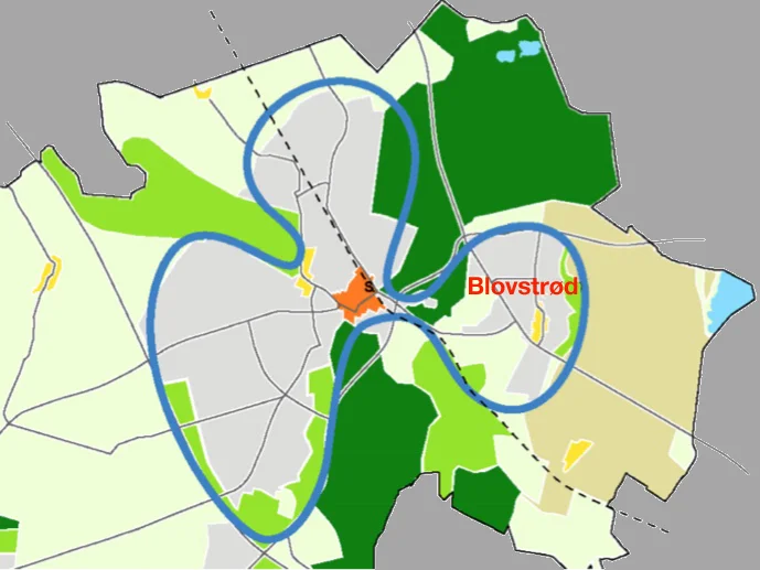 AOB har fra forslaget til kommunes nye planstrategi specielt set på den fremtidige boligudbygning i Blovstrød. Illustration: Allerød Kommune