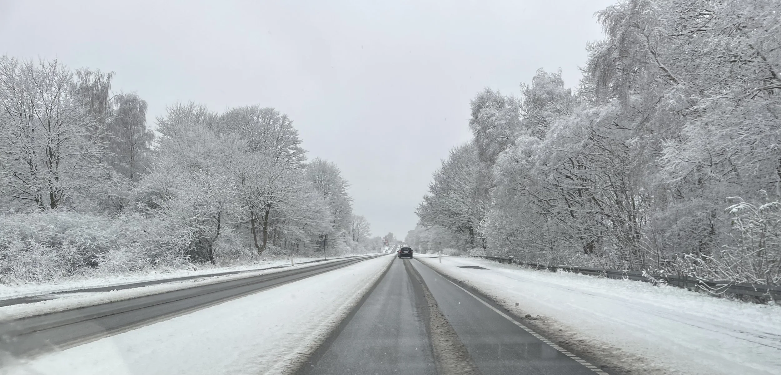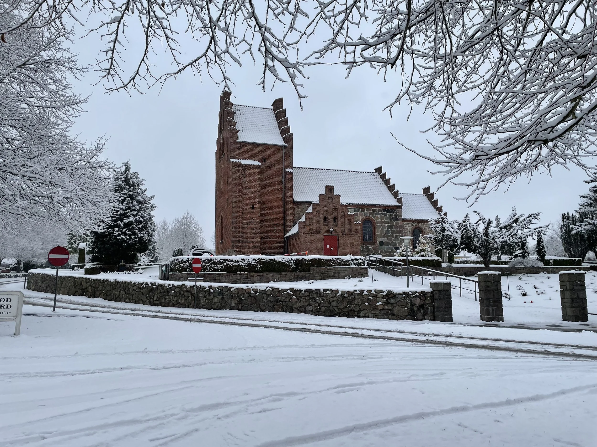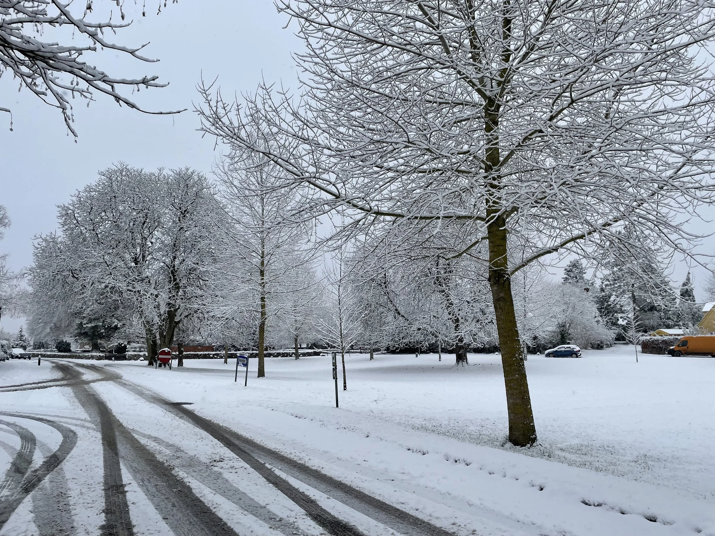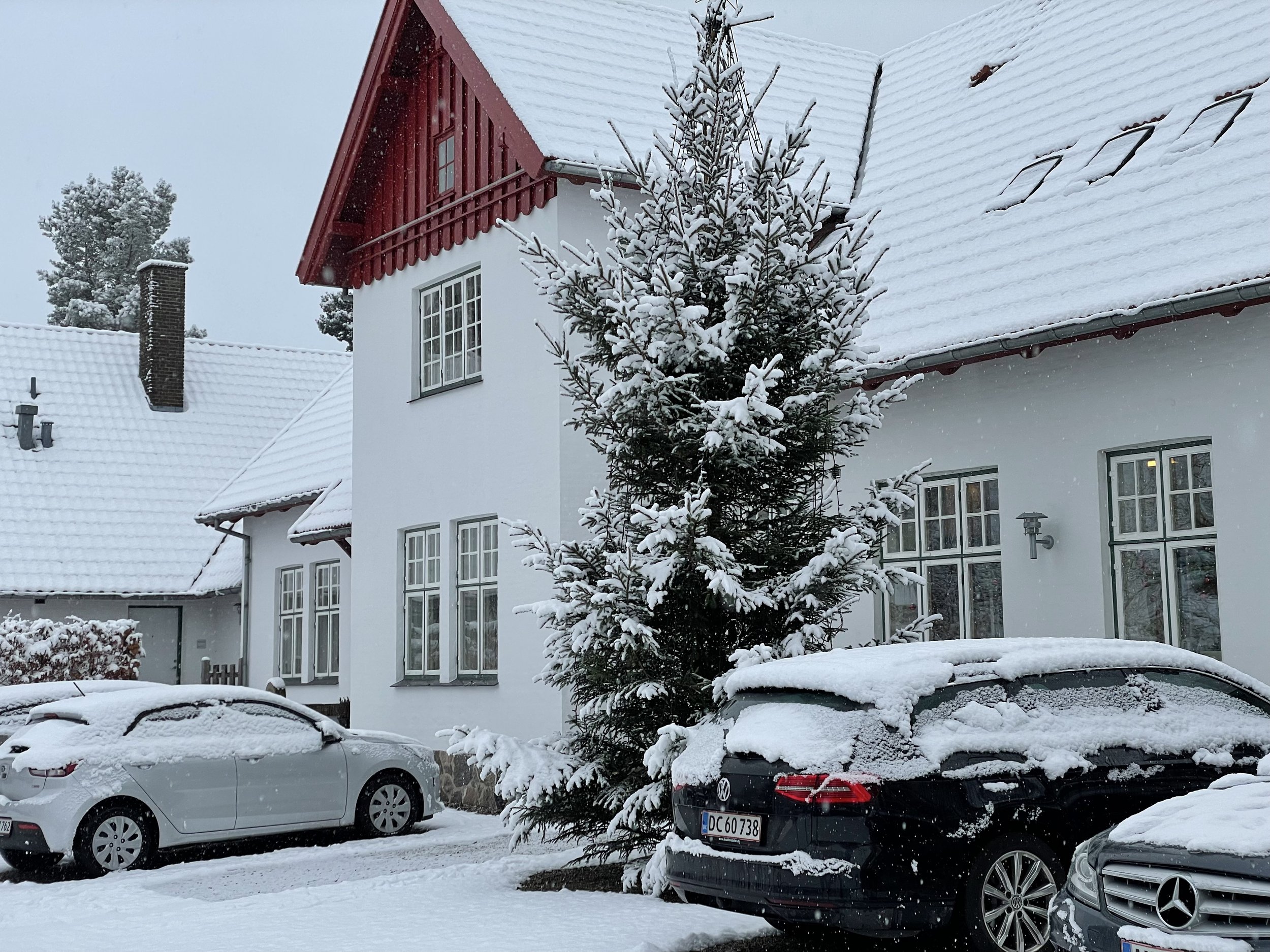 Midt om natten begyndte det at småsne - og da vi alle vågnede om morgenen var Blovstrød blevet helt hvid.