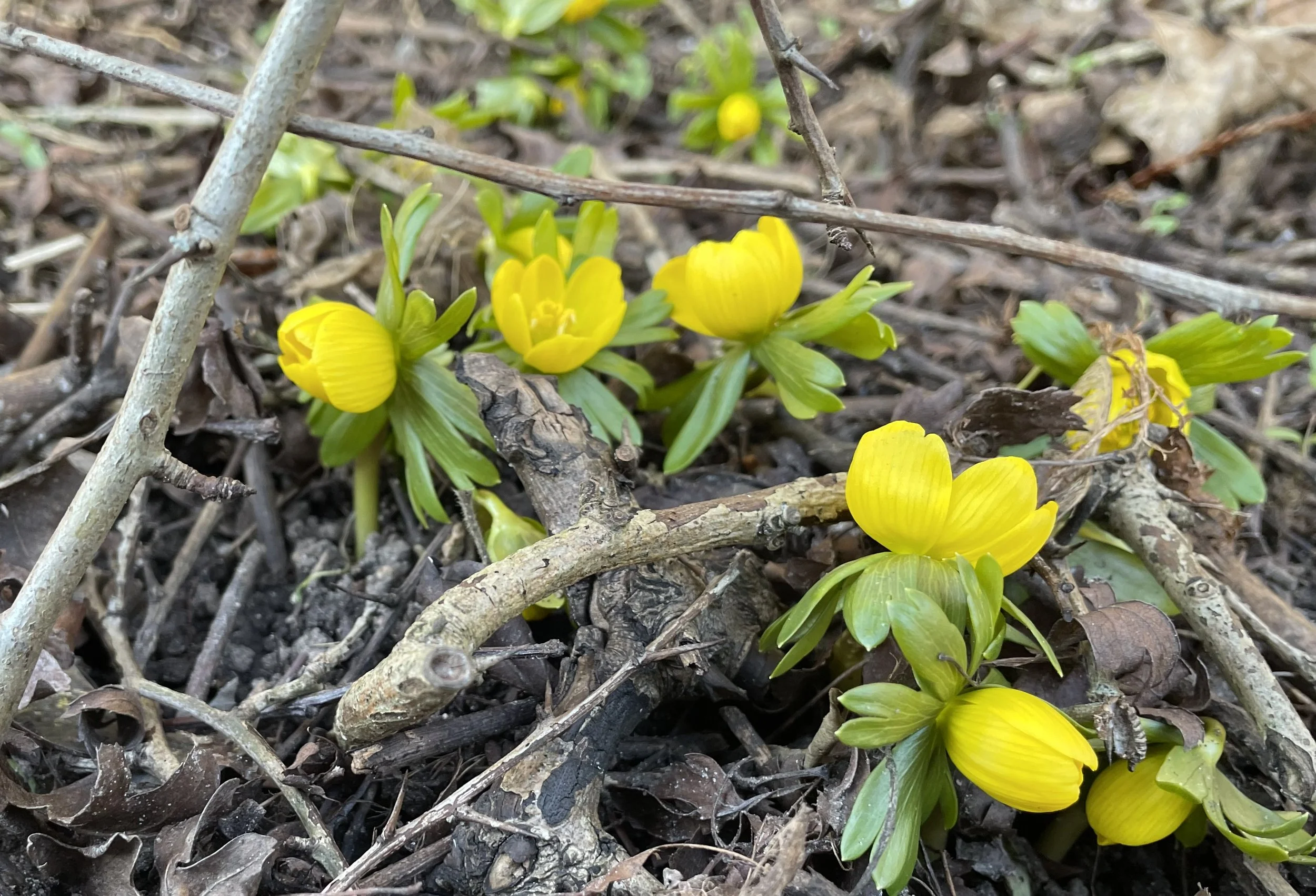 Hvis man går en tur i sin have, vil man se, at de første erantis er fremme, og vintergækkerne er godt på vej. Det varer heller ikke længe før også de første krokus begynder at give farvespil i den endnu grå vinterhave. Pilens hanblomster (gæslinger) er hist og her også fremme. Og selv slyngplanten klematis har fået sine første forårsskud.