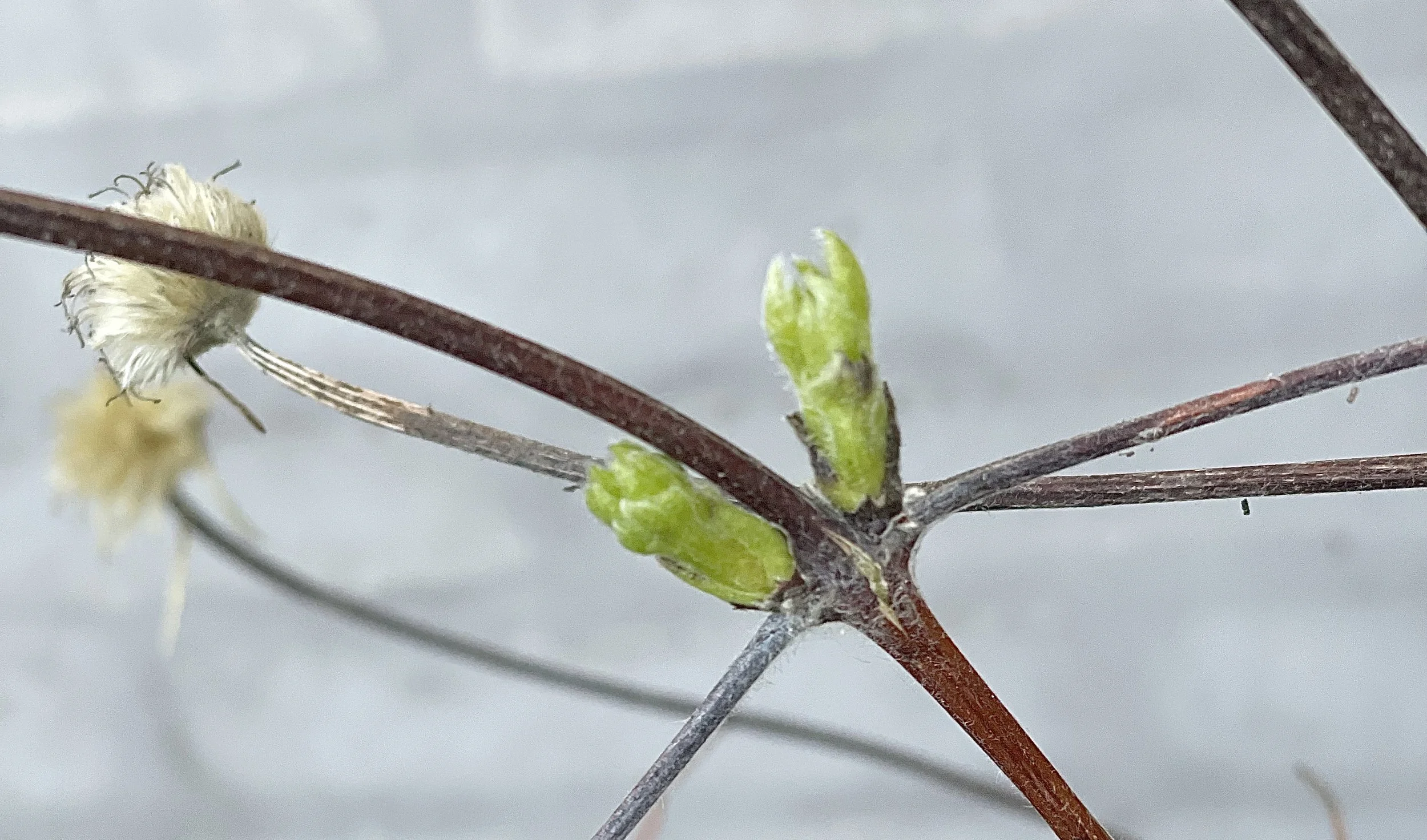 Også slyngplanten klematis har fået sine første forårsskud. Foto: AOB
