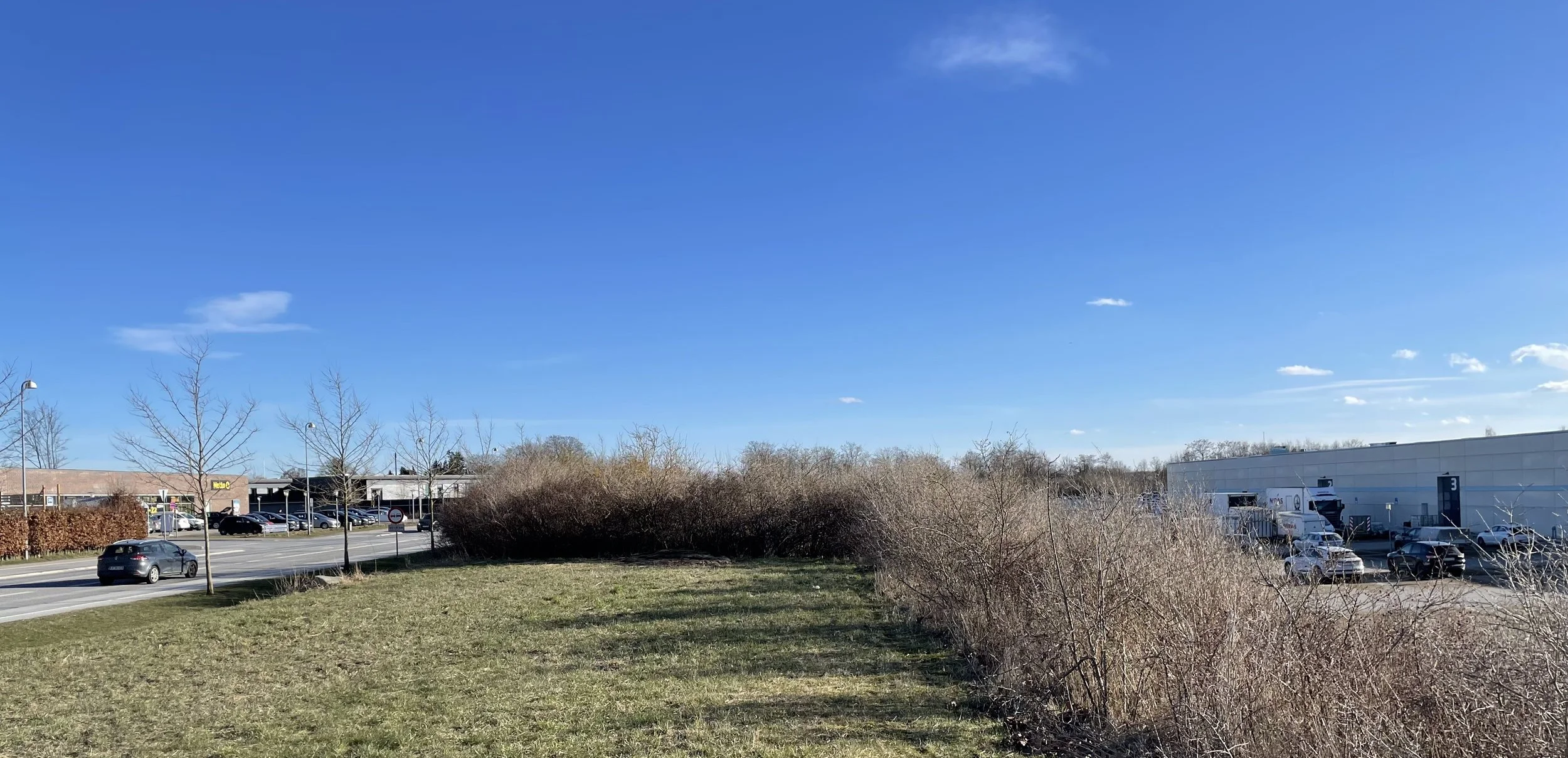 På dette areal - skråt over for Netto på Kongevejen - planlægger Niras at etablere op til 10 lynladere for elbiler. Foto: Flemming Nyberg/AOB