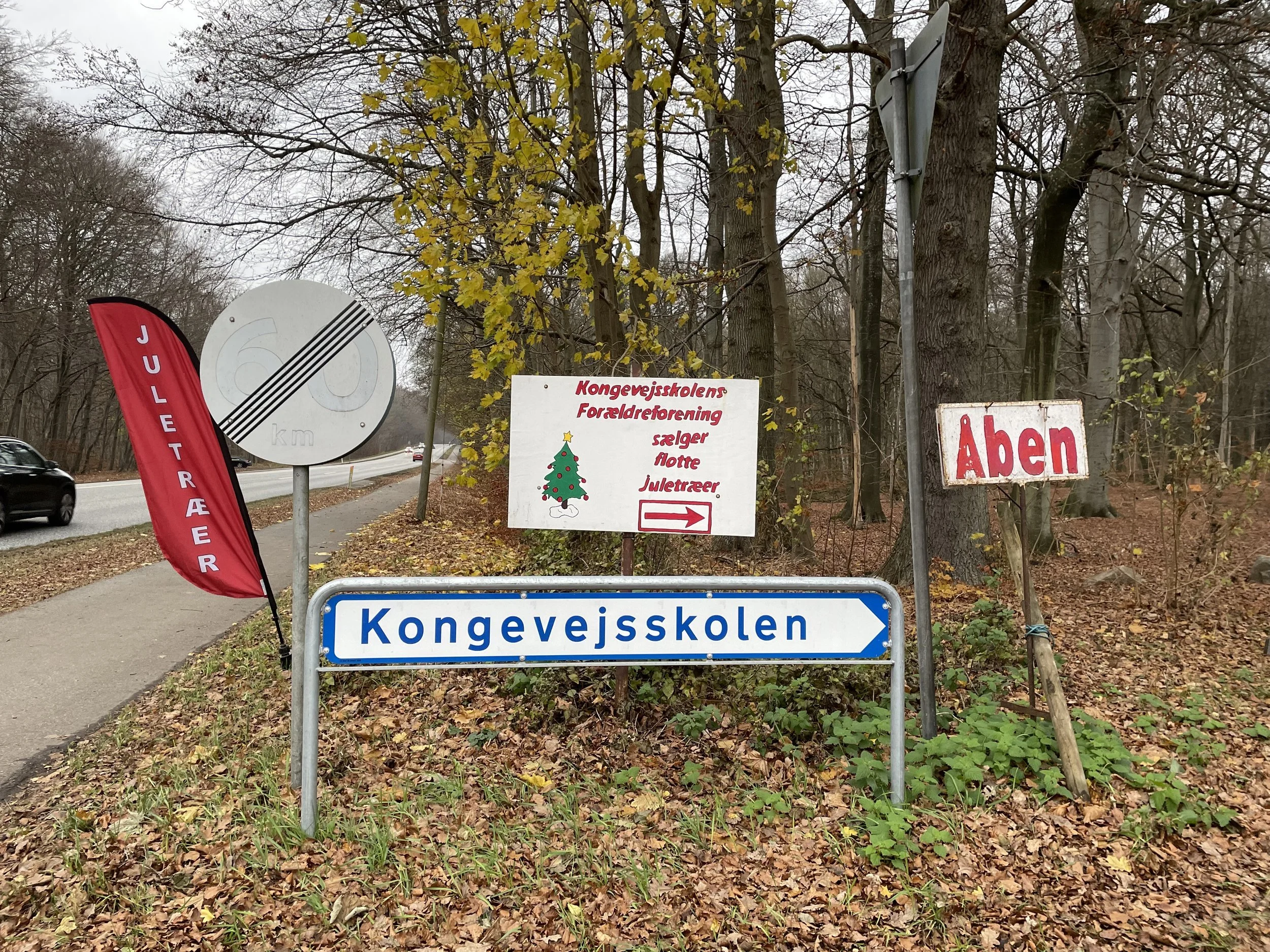 Bevæger man sig videre mod nord ad Kongevejen - lige inden man kører ind i skoven - har Kongevejsskolens Forældreforening - traditionen tro - også juletræssalg. Foto: Flemming Nyberg/AOB